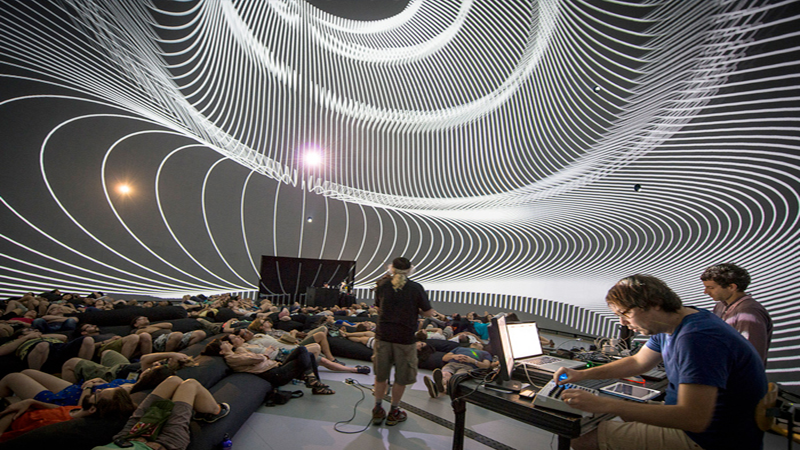 环境是第一要素,其次是音乐,然后是内容。例如,当我在ARS Electronica创作FLOW in Deep Space时,我受到了环境的启发,并决定以地平线为要素工作,因为我是在海边长大的。我整天都在看天气如何影响风景。作为一名生成型艺术家,我不会处理任何预渲染或预定义的内容,因为事情是实时变化的。在这种情况下,空间确实激发了产生结果的灵感。