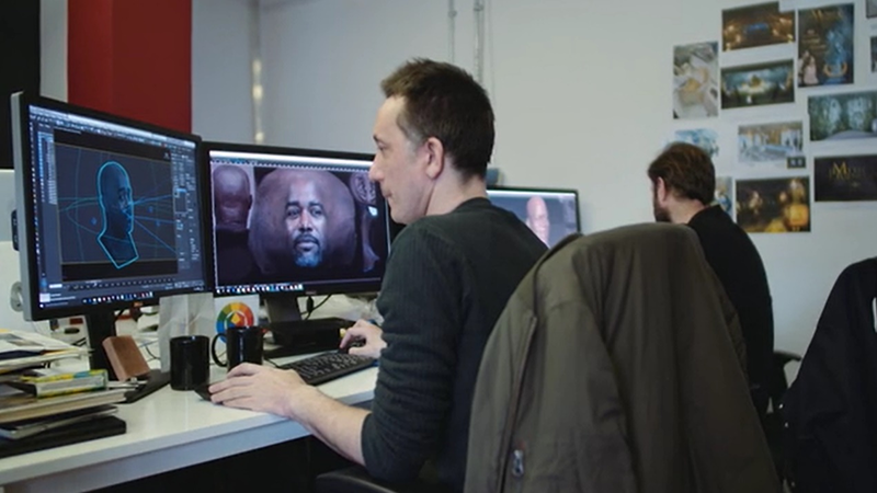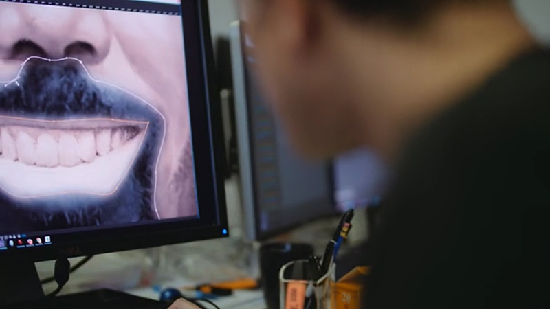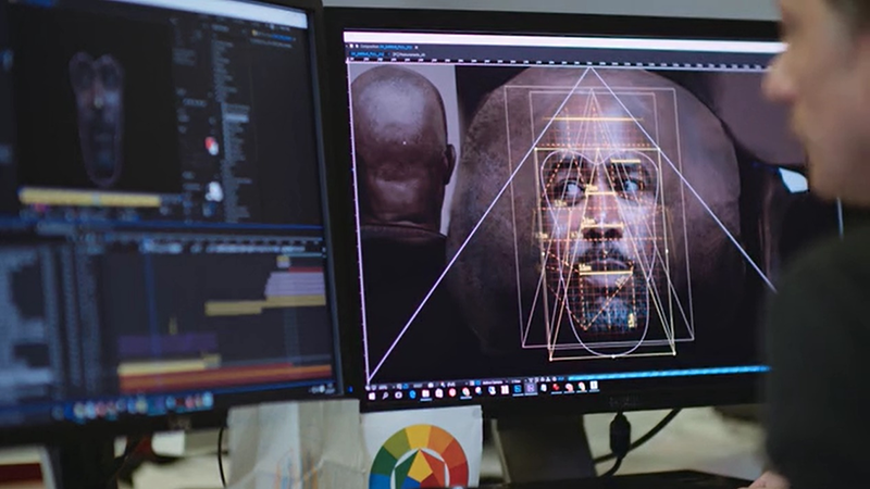 Show用到的视频内容创作。Cinema 4D的MoGraph工具在其中三部动画中特别有用。扫描序列中使用了MoGraph的继承效应器,当合成线框在面部移动时,将其转换为3D效果,然后从鼻子向外扩散。当使用Cel渲染器作为后期效果渲染时,创建了一个复杂的图案。