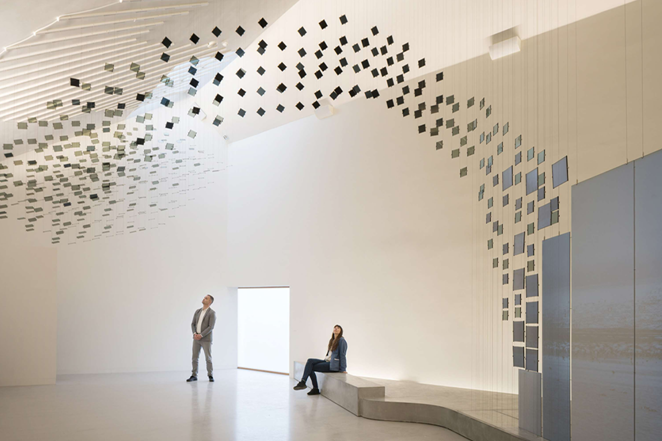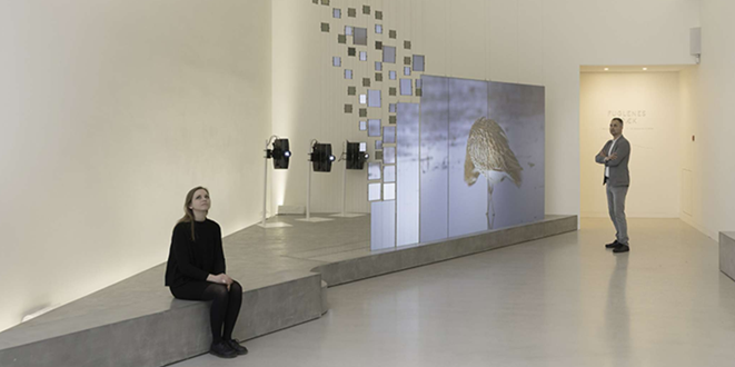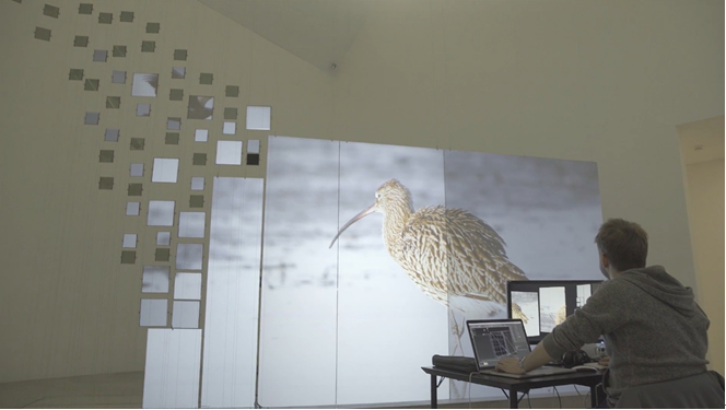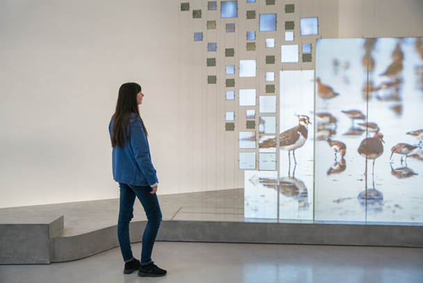该装置由562个LCD屏幕和3台投影机组成,通过投影mapping和LCD的光闸调制,创造了一个身临其境的空间,使游客完全沉浸在候鸟独特的栖息地和行为中。