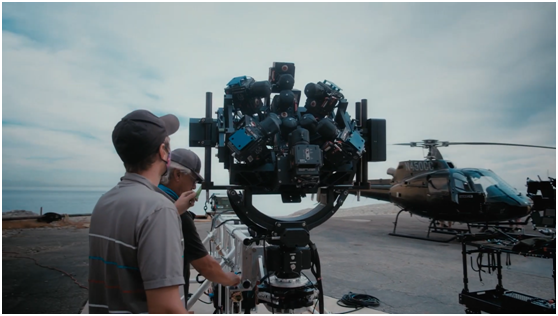 屏幕的分辨率比任何一台相机都要高。创意团队已经建立了自定义的相机阵列,并正在应用平铺、放大和缝合等技术,为画布提供16K的分辨率。这个相机阵列系统名为“大天空”(Big Sky),采用Blackmagic的URSA Mini Pro 12K相机,包括8K功能的RED,经过大量的研发,被组合成阵列,用于不同场景的拍摄。