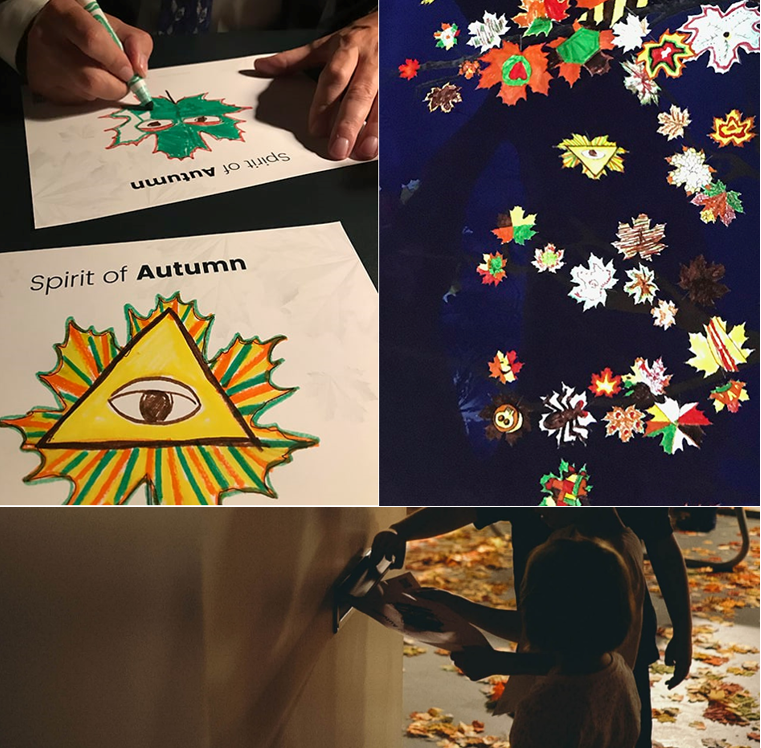 这个数字媒体展是一个可以让你与秋季风景互动的地方——无论是通过拍手让它下雨或打雷、把树叶从地上踢起来,还是不断地通过手臂动作让树叶旋转,无论是孩子还是成人都可以用自己的想象力与数字内容互动。