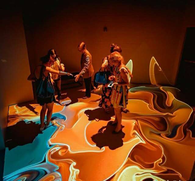 一个被称为“秋日之舞”的空间里,允许你用手、脚自由地操纵流动的、浮油般的彩色图像,创作属于你自己的秋天风格的画作