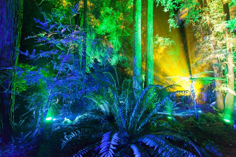 Forest“古老的森林”的照明设计让游客有一种穿越到远古的时空跳跃感。整个路径上有激光投射的萤火虫群落,有古老的红杉树森林和恐龙时代的苏铁和蕨类植物。行进的过程中,神秘的音乐伴随着变换的灯光模式。雾森系统喷发的薄雾,点缀着大气,古老的森林周围有着一种难以置信的氛围。